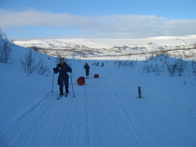 The actual trek wasn’t that hard, although there were a few steep hills to walk up, which sometimes was difficult with the skis on. We walked for about six to seven hours a day before setting up camp. It was cold on occasions, but not as I expected. One night, on top of a mountain, we witnessed the most spectacular thing I had ever seen……..the Northern Lights. - Stood outside the tent with just my thermals on (after Mike had nicely turned the heating off) was fantastic and an experience, one I would never forget. No, not seeing Mick in his thermals - the Northern Lights.